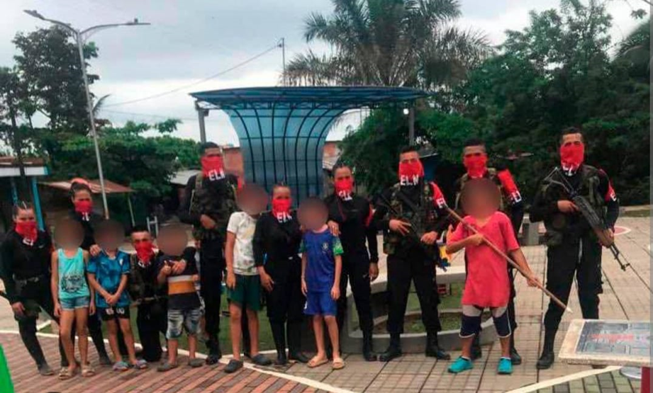 Imágenes de niños posando al lado de guerrilleros del ELN en el Corregimiento de Versalles- municipio de Tibú abril 2023