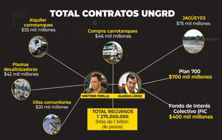 Además podemos ver que Paula Bolívar una periodista de la W en su incansable trabajo de denuncias sobre el escándalo de los carrotanques ha llegado más allá de la primera denuncia en este fin de semana desato nueva información la cual llevo a la indignación de la gente de bien de derecha y puso bravos a los tibios, pues vemos que el robo de la UNGRD fueron mas de un Billón doscientos setenta y cinco mil millones de pesos ($1.275.000.000.000), el país fue desangrado de esta forma compra de carrotanques $46 mil millones, Jagueyes $75 Mil Millones de pesos dirán ustedes que es una Jaguey( La definición de jagüey, según se establece en América es: balsa, pozo o zanja llena de agua, ya artificialmente, ya por filtraciones naturales del terreno) en eso se gastaron $75 mil millones los cuales no se vieron porque nunca se construyó, Plan 700 que era el plan de Sneyder Pinilla donde se entregaron a dedo los contratos donde se benefició el departamento de Santander que fue el municipio de Girón y la Guajira en la Uribia $700 mil millones de pesos, fondo de interés colectivo (FIC) $400 mil millones, alquiler de carrotanques $35 mil millones, plantas desalinizadoras $42 mil millones de pesos y las famosas ollas comunitarias $20 mil millones de pesos, pues ahora sí creo que los políticos de izquierda y de derecha, más los altos funcionarios desde asesores y ministros están viviendo sabroso como dice nuestra Vicepresidenta Francia Márquez.