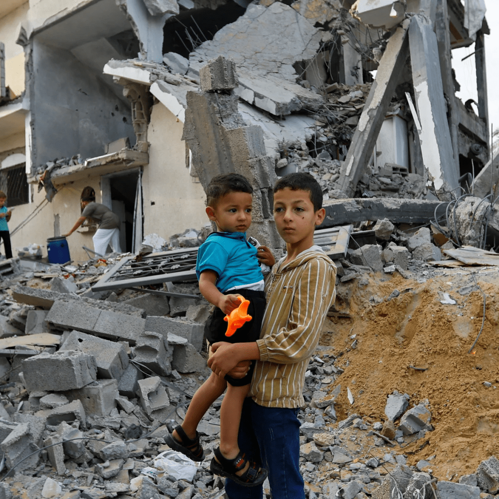 Cae la noche y papá y mamá no han regresado. Me recuesto en los escombros con mi hermano en brazos; me abraza fuertemente con su cuerpo aún temblando. El ruido de nuevas bombas nos ha despertado. Nos refugiamos en la única pared que en nuestra casa ha quedado. Papá y mamá no vuelven; yo estoy muy asustado. Mi cabeza duele y sigue sangrando poco a poco. Mi hermano se recuesta sobre mi pecho; lo abrazo fuerte y le digo que todo estará bien, que papá y mamá volverán pronto y que todo habrá acabado. Se duerme en mis brazos, rodeado de tierra y ruinas…