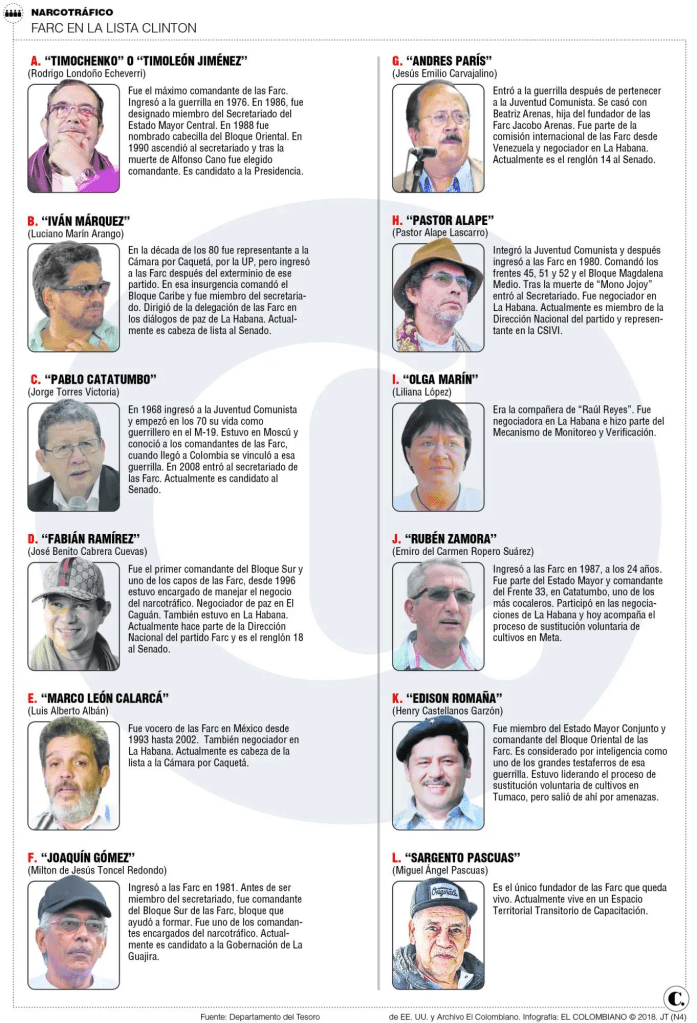 Quienes aparecen en esta lista no pueden realizar transacciones financieras ni tener negocios comerciales. Actualmente existen más de 1.000 personas y más de 600 empresas incluidas en ella, algunas presuntamente por “error”. En 1999, la Ley Kingpin otorgó a la OFAC el poder de atacar las redes financieras de los narcotraficantes a nivel mundial. En 2003, el presidente George W. Bush incluyó a las FARC y a las AUC; en 2008 y 2017 se aprobaron sanciones contra el gobierno de Venezuela por el llamado Cártel de los Soles, decisión formalizada tras el proceso electoral fraudulento y la perpetuación del poder por parte de la dictadura.